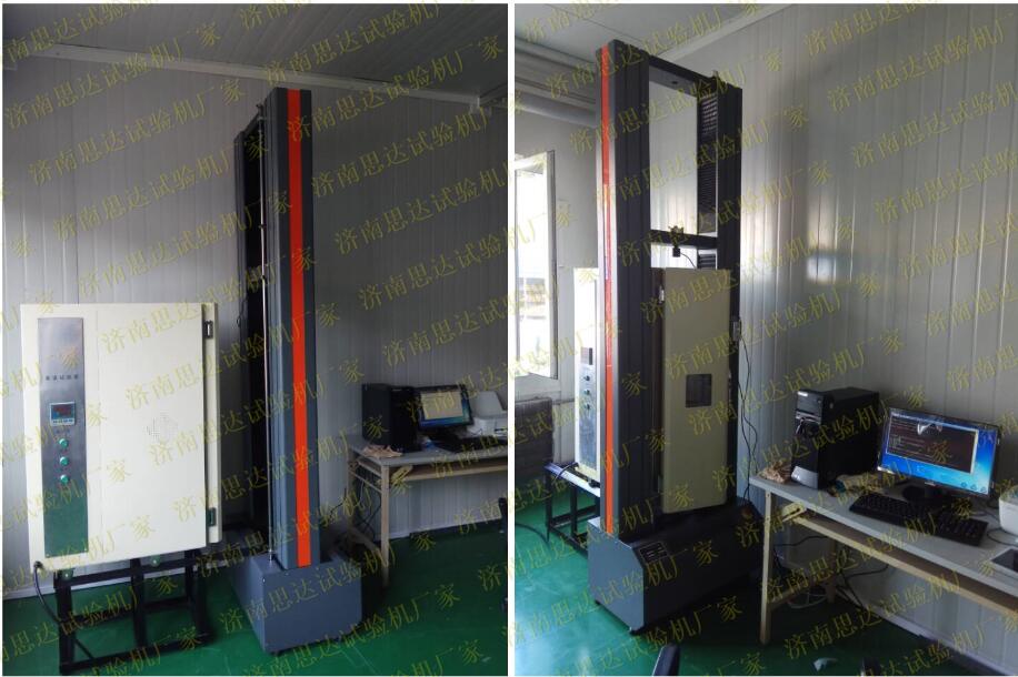 該設(shè)備為用戶定做設(shè)備,配置高溫箱,試驗(yàn)溫度最高可達(dá)100℃,濟(jì)南思達(dá)定做的這款機(jī)型為加高型,高溫箱可自由滑動(dòng),并且配備專(zhuān)用的拉伸夾具,如下圖所示